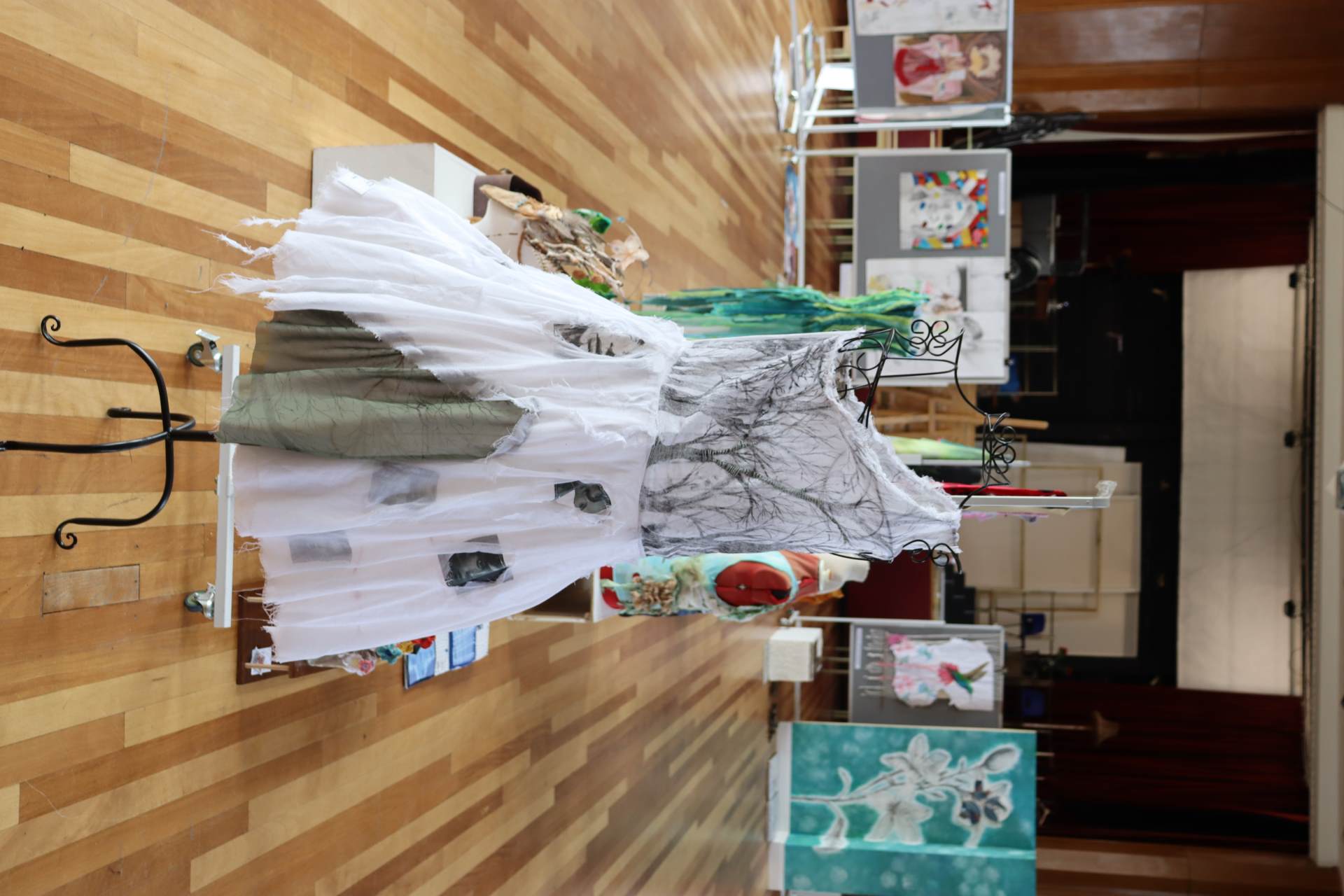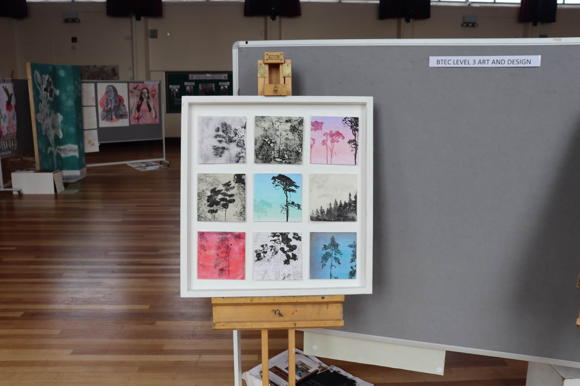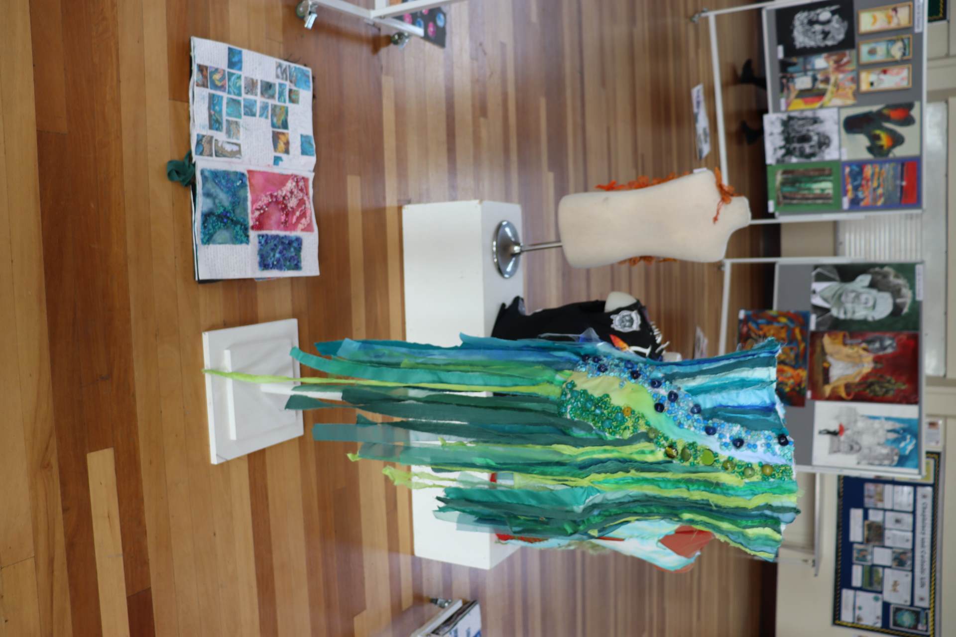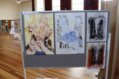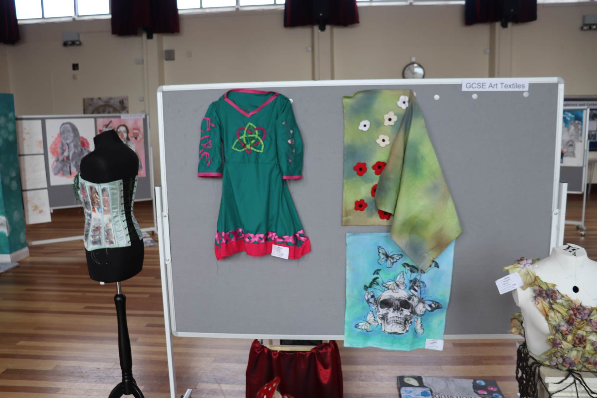 The exhibition covers a range of creative disciplines from drawing and painting to fabric dyeing, sewing, 3D and print etc. The work displayed demonstrates the student’s ideas and concepts in relation to the themes they were exploring. The GCSE Art and Textiles themes were, Natural worlds and Apart and or Together. The final exam title for GCSE was Power. The BTEC students themes included briefs based on Creative Landscapes, Introspection and their final exam on Spirituality. A Level students choose their own theme for their personal line of investigation so a wider range of subject matter is evident throughout their work.