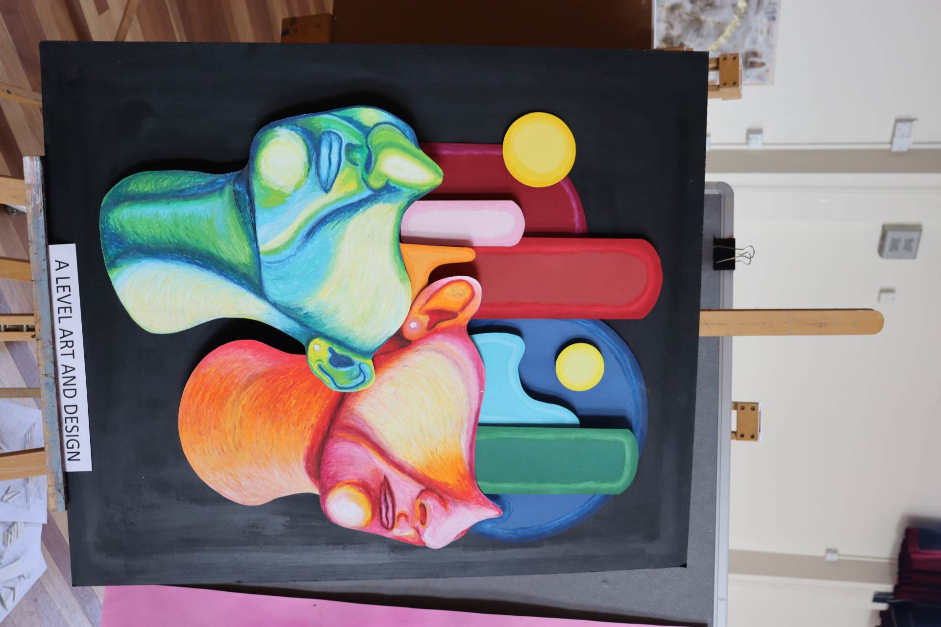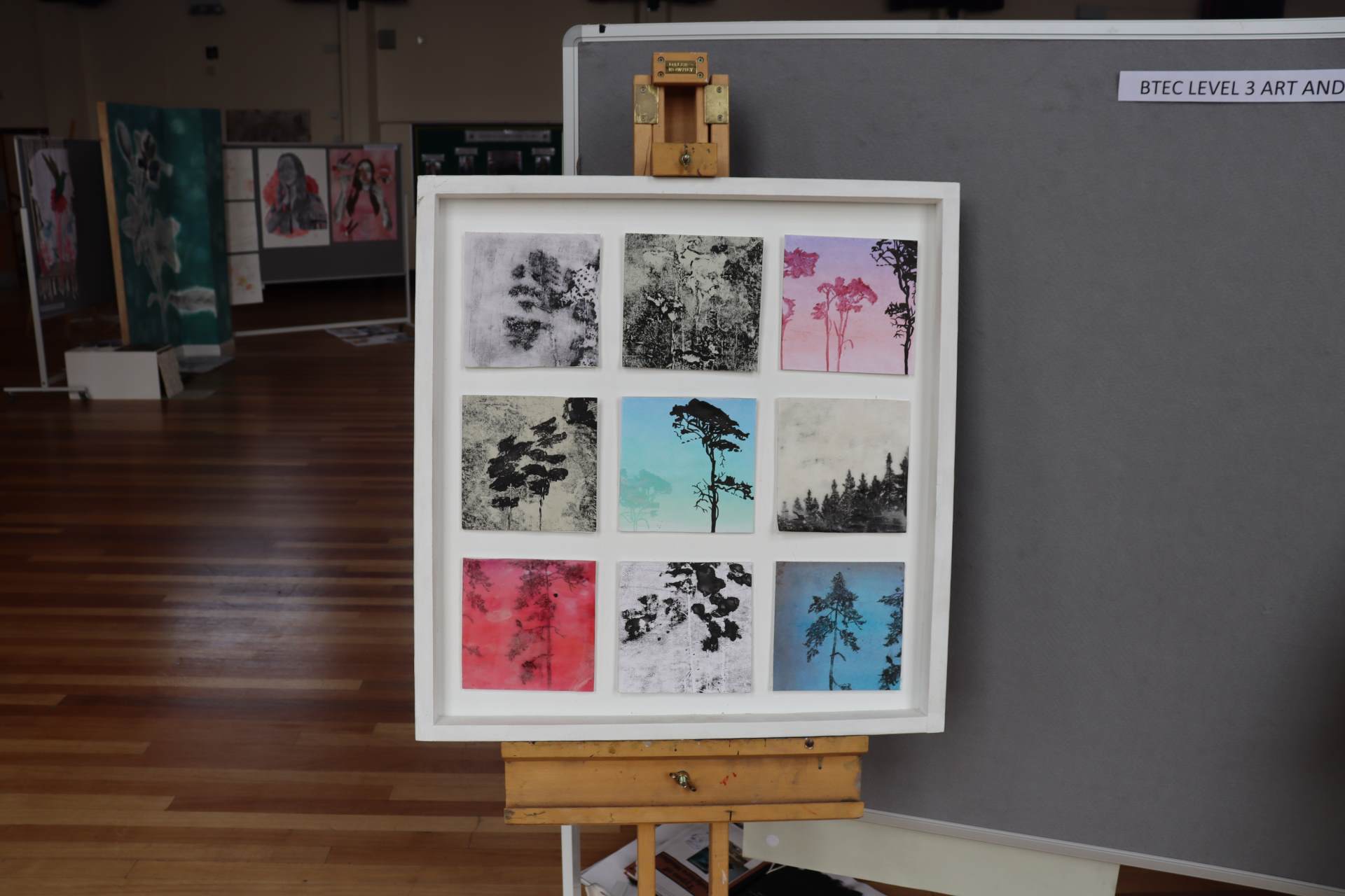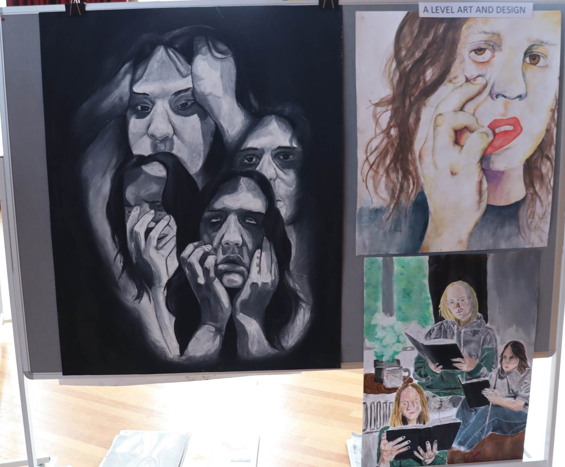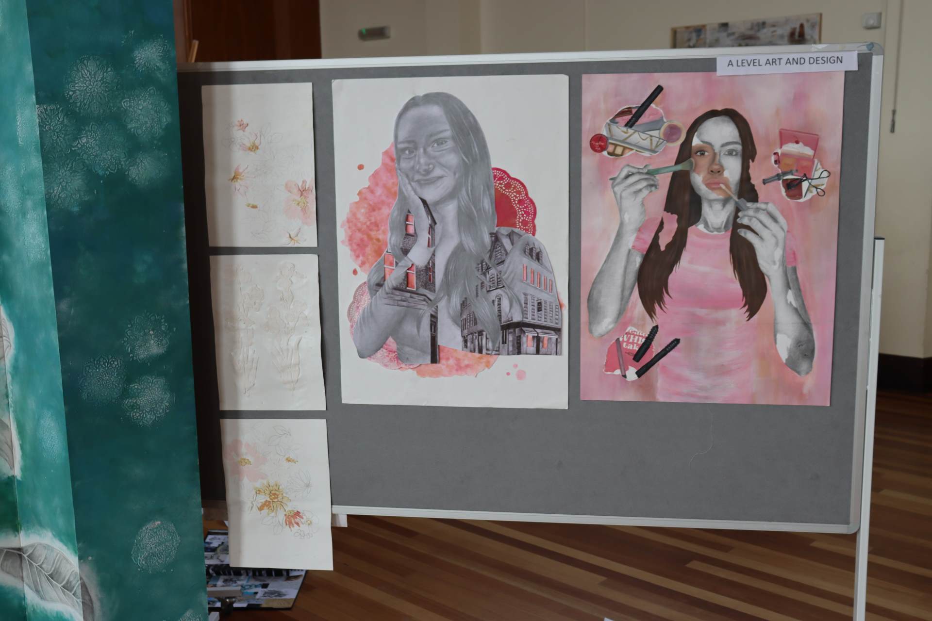 The exhibition covers a range of creative disciplines from drawing and painting to fabric dyeing, sewing, 3D and print etc. The work displayed demonstrates the student’s ideas and concepts in relation to the themes they were exploring. The GCSE Art and Textiles themes were, Natural worlds and Apart and or Together. The final exam title for GCSE was Power. The BTEC students themes included briefs based on Creative Landscapes, Introspection and their final exam on Spirituality. A Level students choose their own theme for their personal line of investigation so a wider range of subject matter is evident throughout their work.