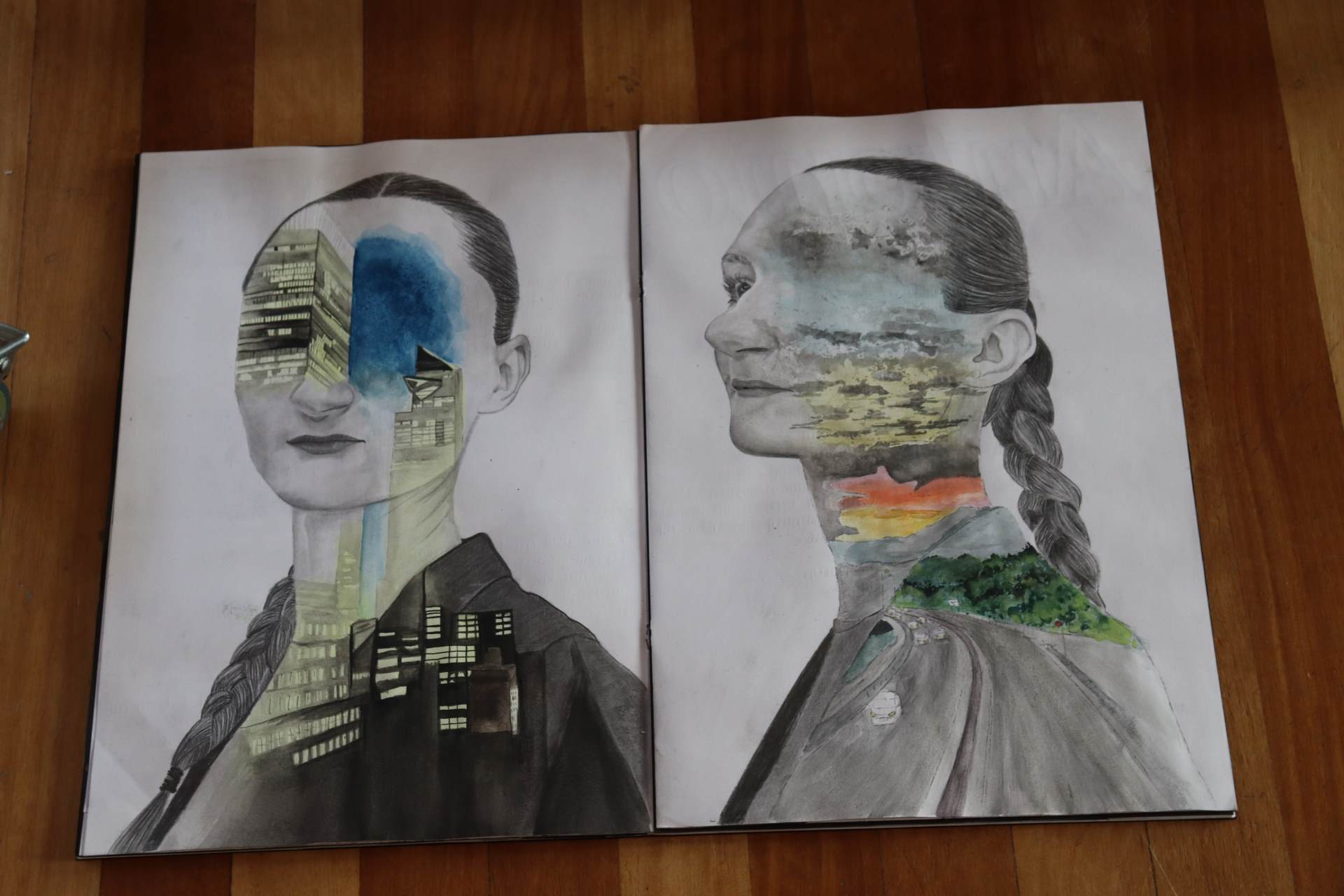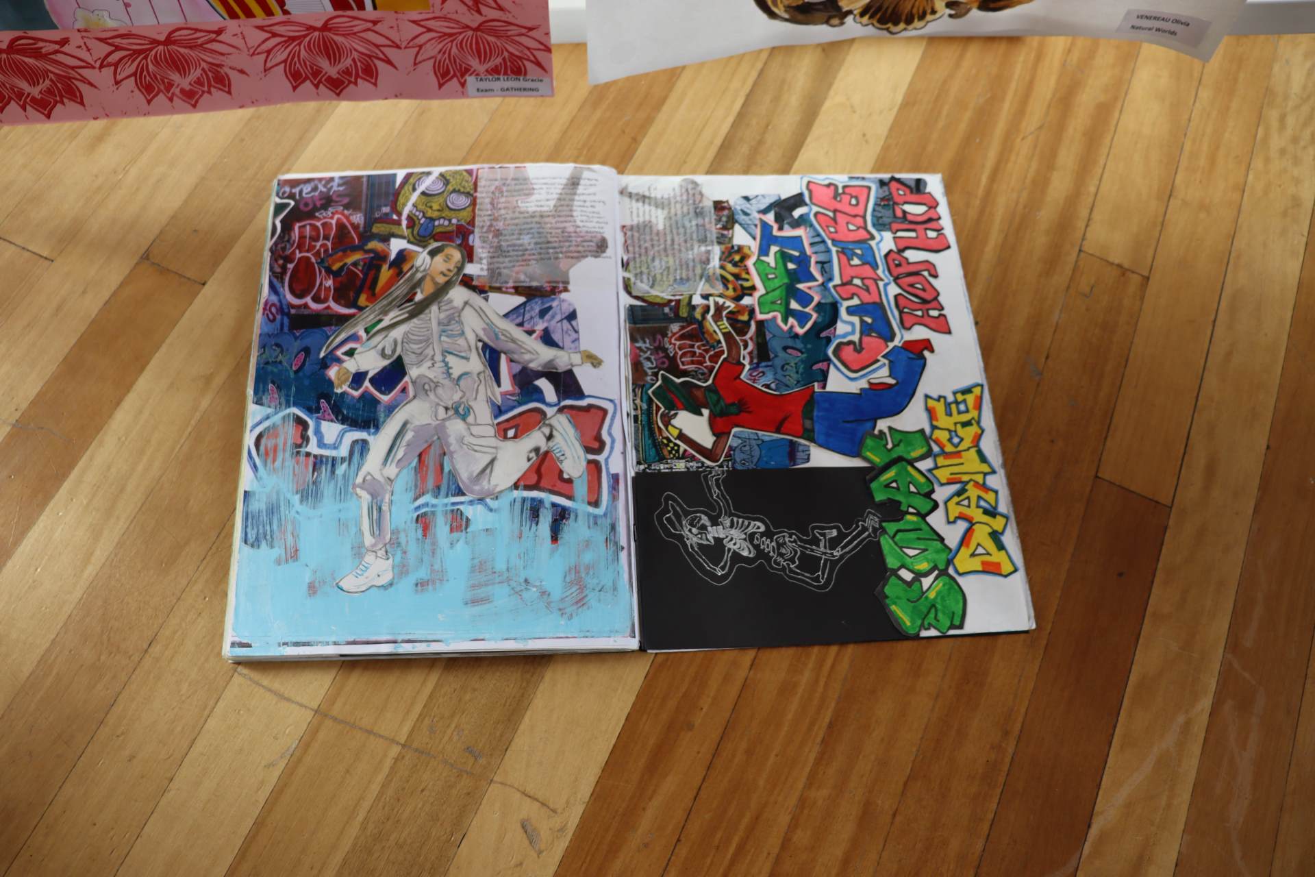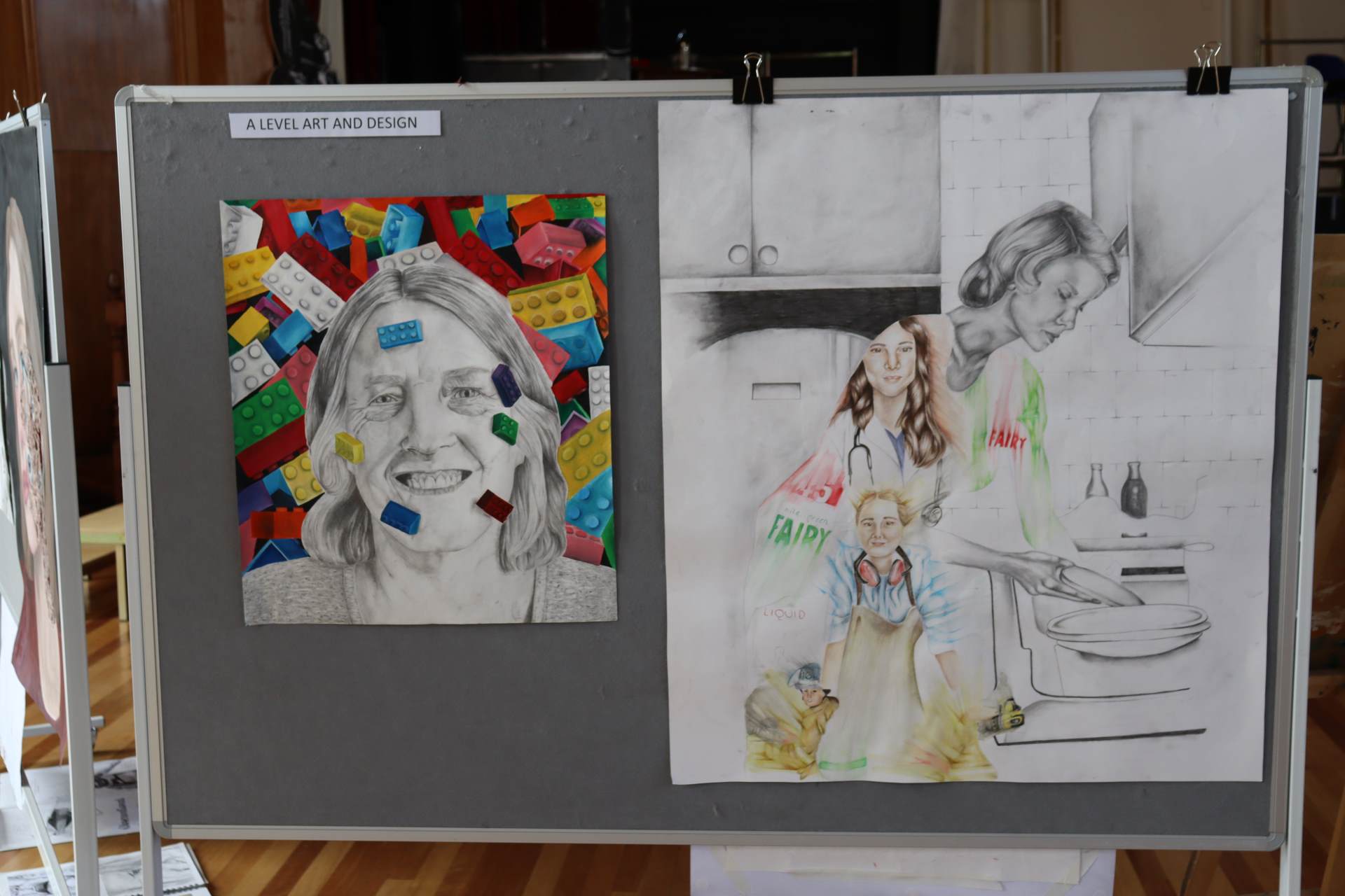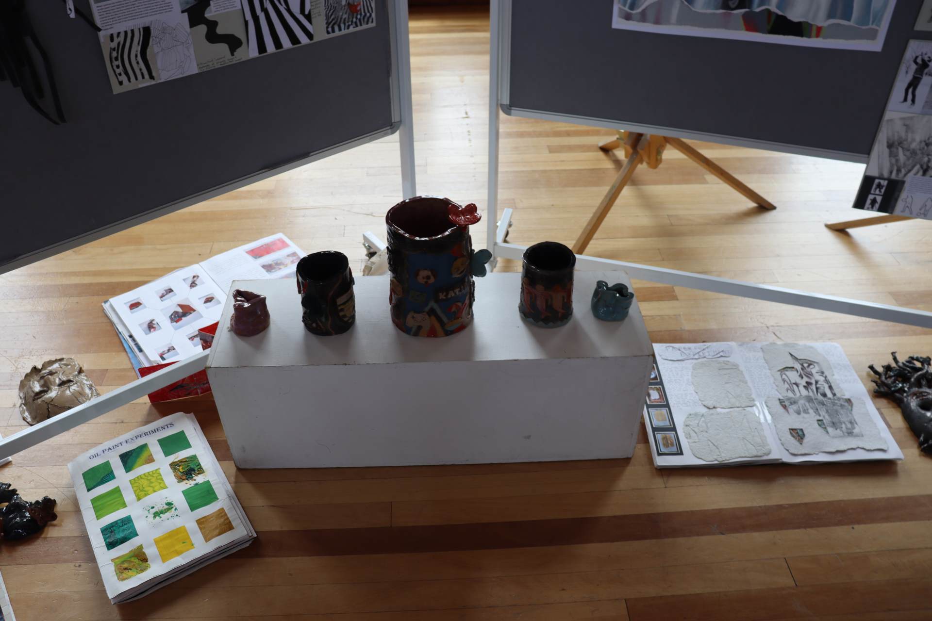 The exhibition covers a range of creative disciplines from drawing and painting to fabric dyeing, sewing, 3D and print etc. The work displayed demonstrates the student’s ideas and concepts in relation to the themes they were exploring. The GCSE Art and Textiles themes were, Natural worlds and Apart and or Together. The final exam title for GCSE was Power. The BTEC students themes included briefs based on Creative Landscapes, Introspection and their final exam on Spirituality. A Level students choose their own theme for their personal line of investigation so a wider range of subject matter is evident throughout their work.