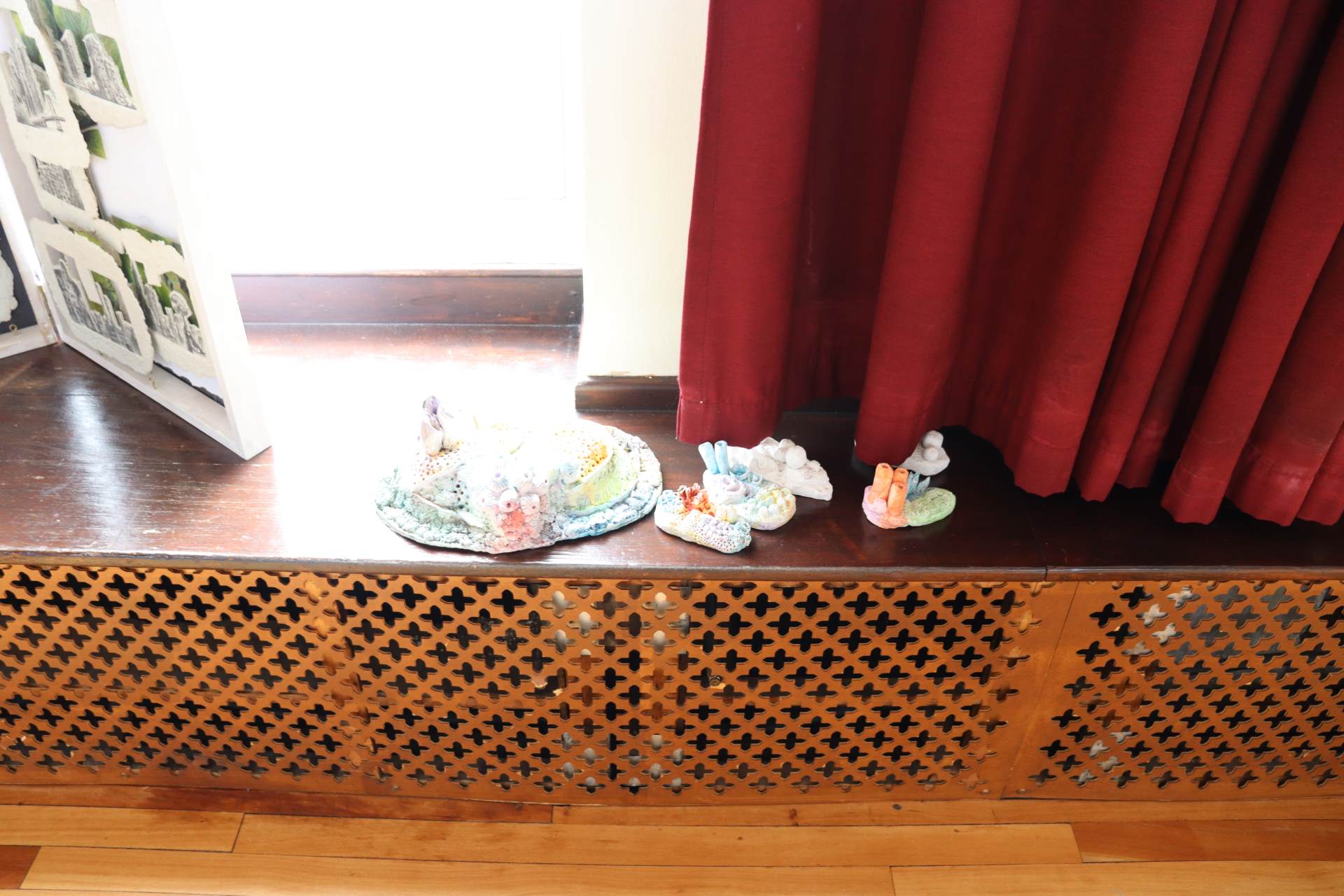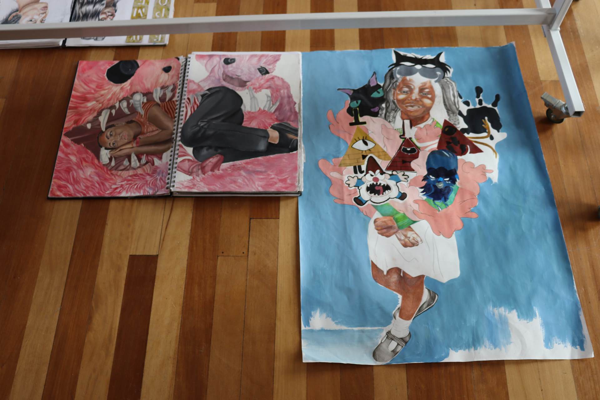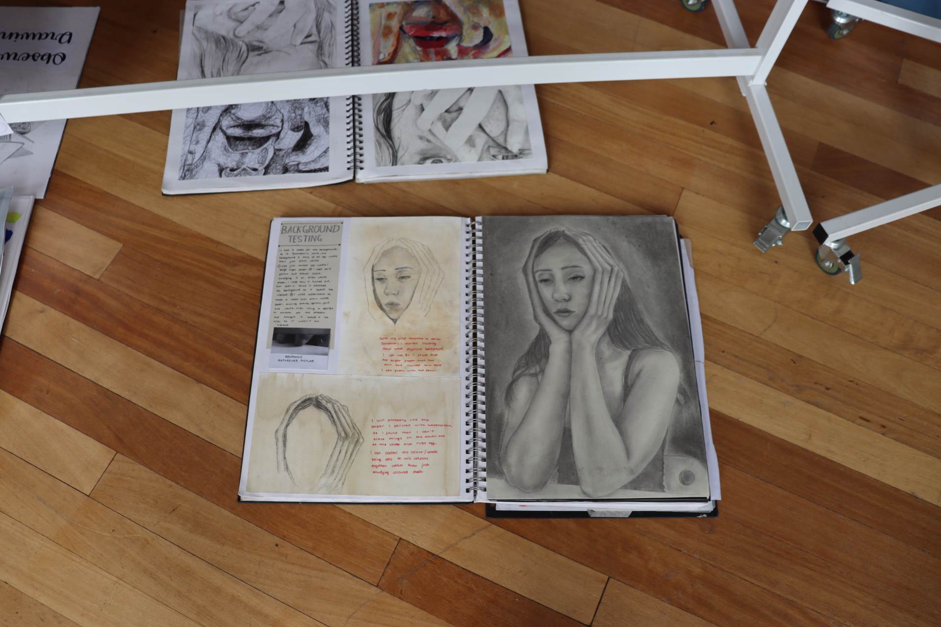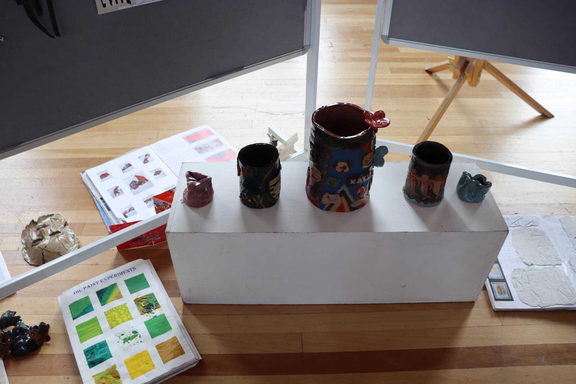 The exhibition covers a range of creative disciplines from drawing and painting to fabric dyeing, sewing, 3D and print etc. The work displayed demonstrates the student’s ideas and concepts in relation to the themes they were exploring. The GCSE Art and Textiles themes were, Natural worlds and Apart and or Together. The final exam title for GCSE was Power. The BTEC students themes included briefs based on Creative Landscapes, Introspection and their final exam on Spirituality. A Level students choose their own theme for their personal line of investigation so a wider range of subject matter is evident throughout their work.